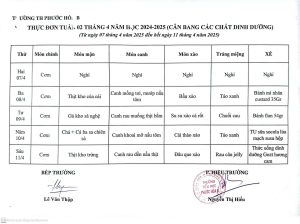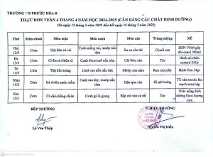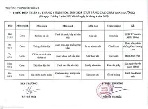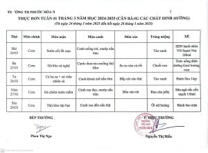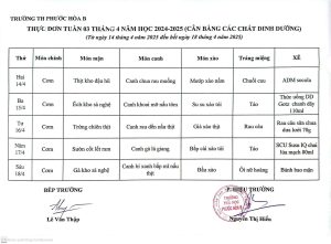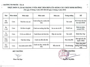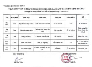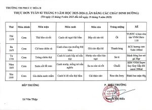 Thực đơn bán trú từ ngày 22/9 đến 26/9/2025